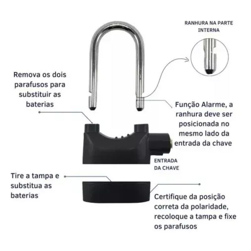 Proteja o que é seu com praticidade e tecnologia! O Cadeado Antifurto com Alarme é a escolha certa para quem busca segurança reforçada contra tentativas de roubo ou violação.