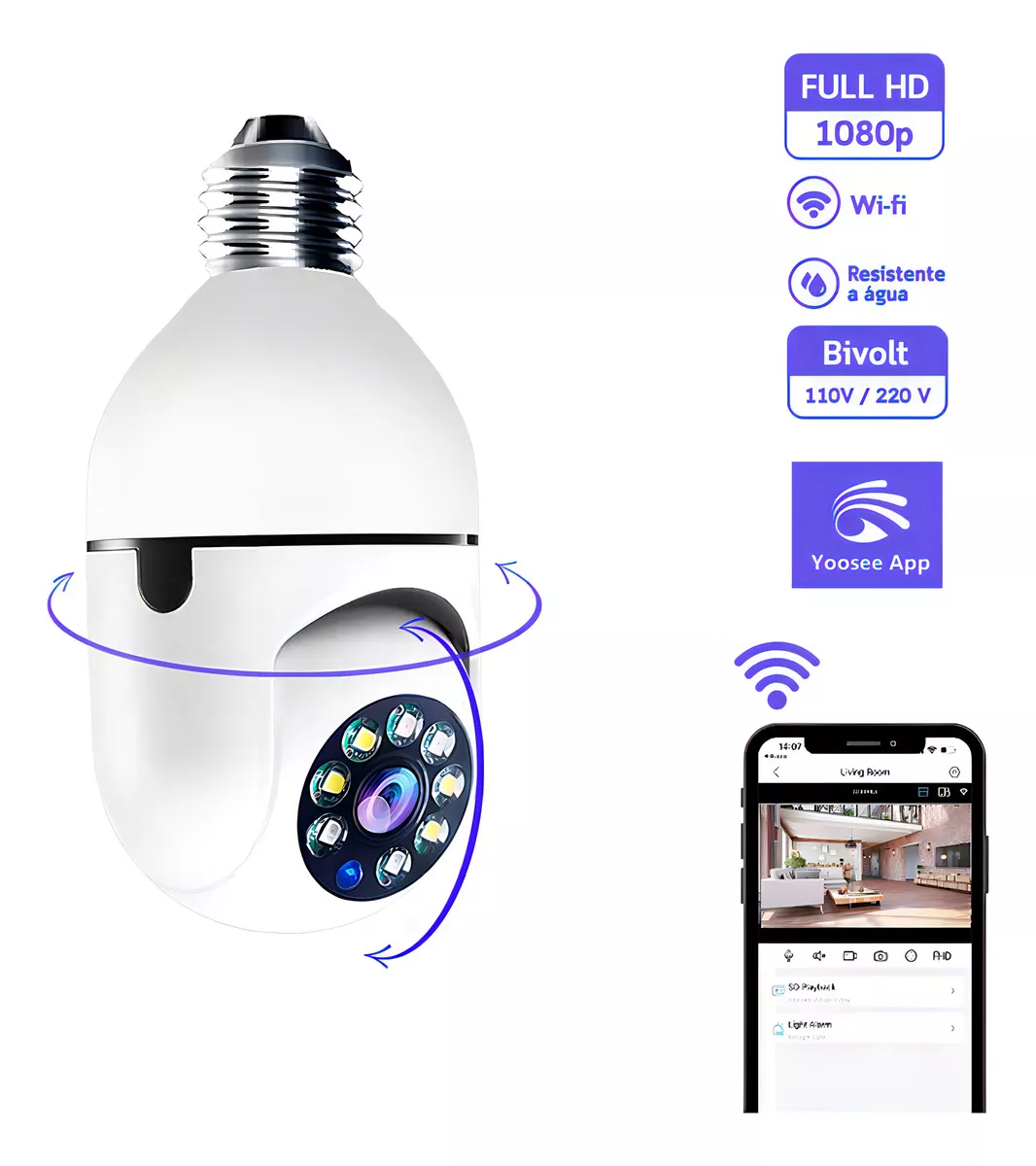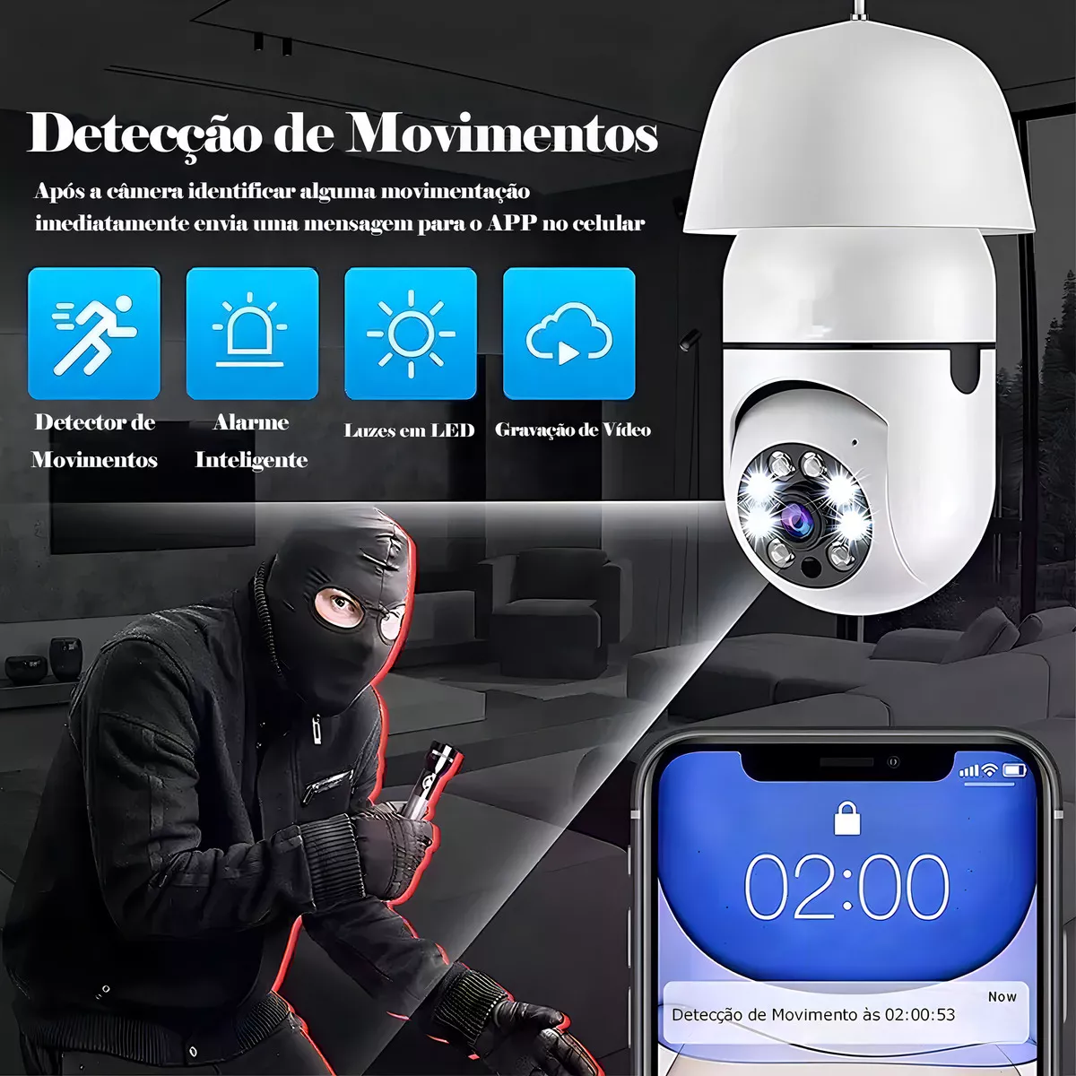 🔒 Proteja seu espaço com tecnologia discreta e eficiente! Adquira agora a sua Câmera Lâmpada Wi-Fi IP e monitore tudo de onde estiver!