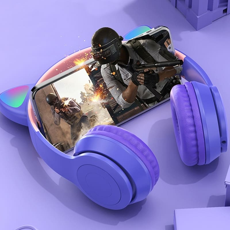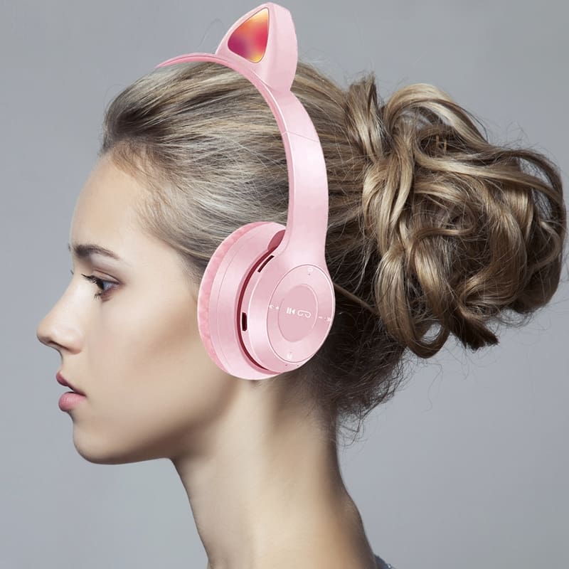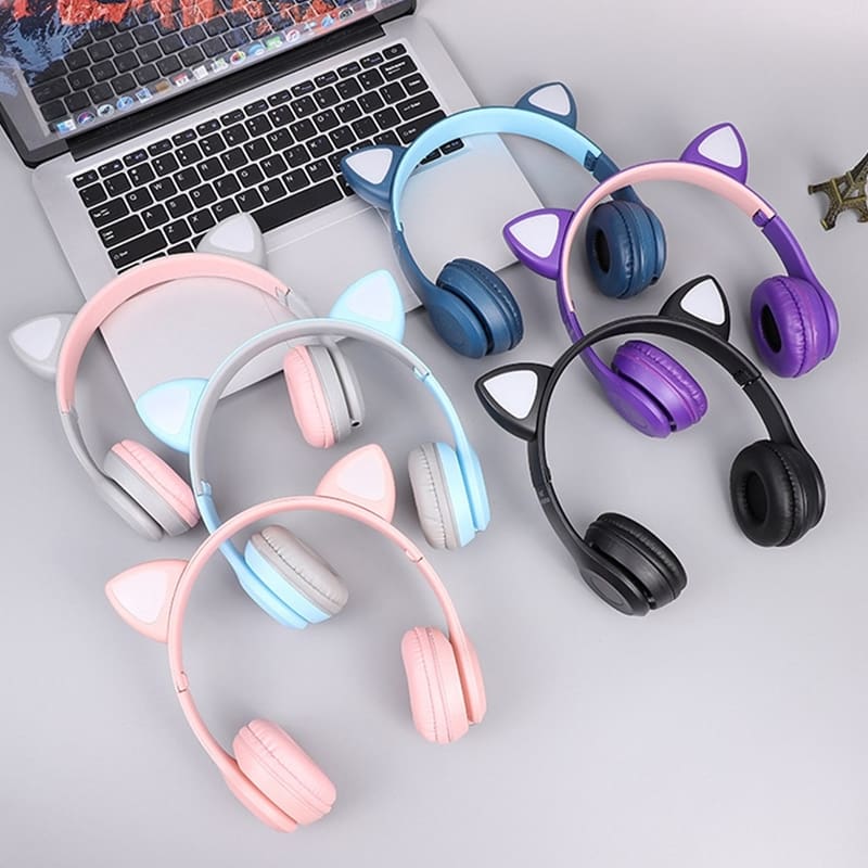 01 Headphone com orelhas de gato e luzes LED