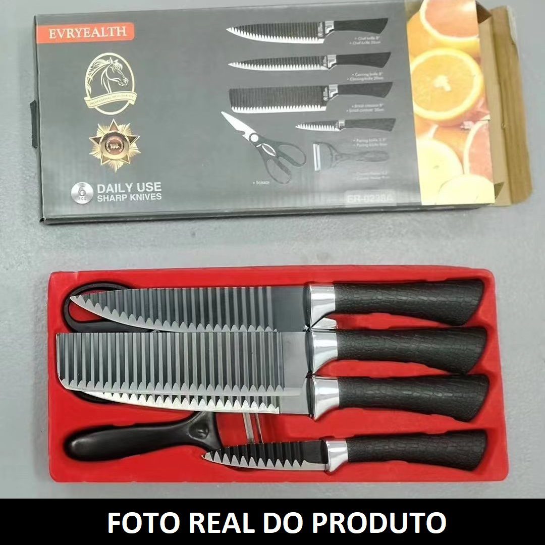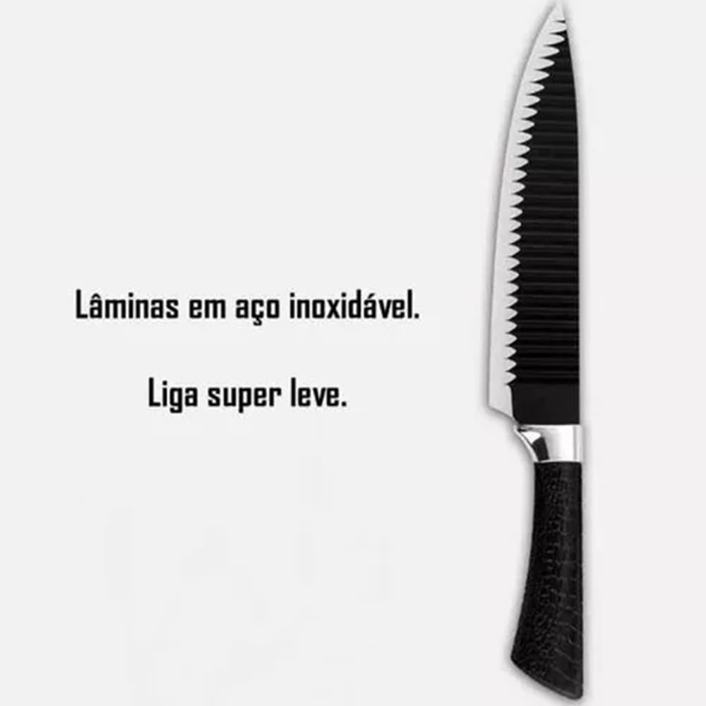 Transforme sua experiência culinária com este sofisticado conjunto de facas! Com seis peças cuidadosamente projetadas para proporcionar cortes precisos, segurança e um design elegante, esse kit é indispensável para qualquer cozinha.