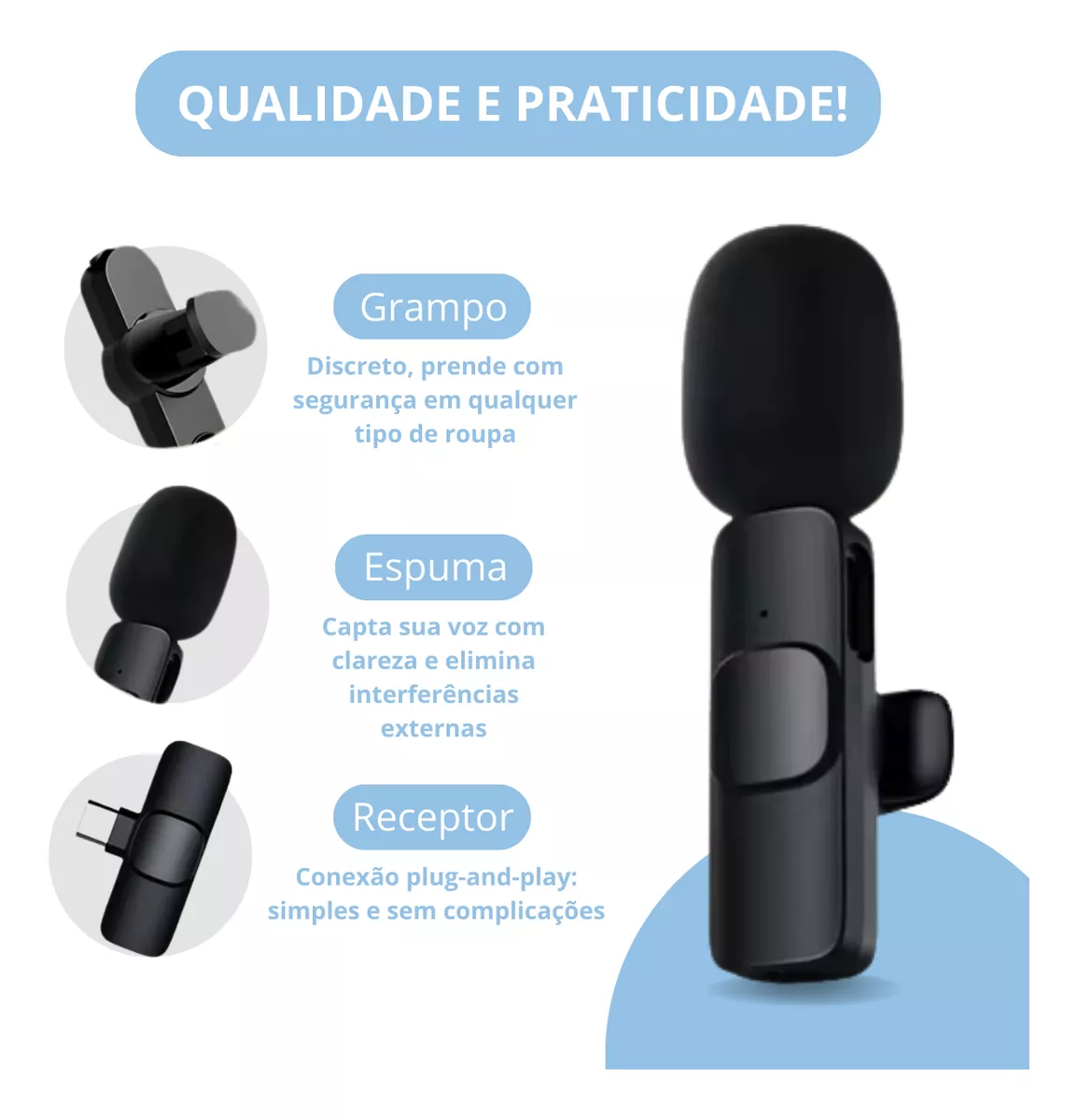 📢 Transforme suas gravações! Adquira agora o Microfone de Lapela Plug & Play e tenha áudio profissional onde e quando quiser – com a praticidade que você merece! 🎤✨