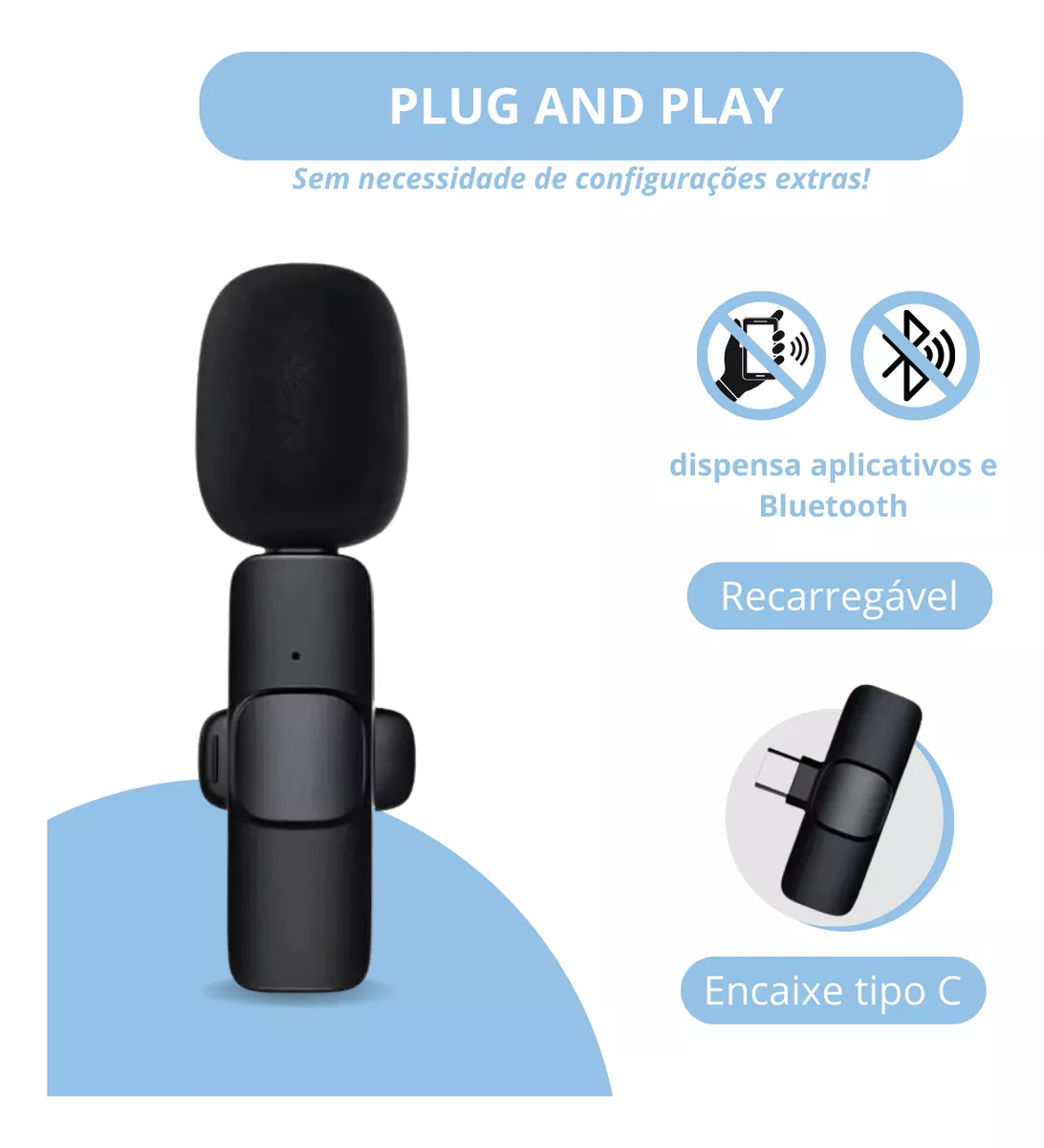 Eleve a qualidade das suas gravações com um som cristalino, nítido e sem ruídos! Seja para criadores de conteúdo, podcasts, vídeos, transmissões ao vivo ou reuniões online, o Microfone de Lapela Plug & Play com Conexão Lightning oferece um áudio profissional de forma simples e eficiente – sem configurações complicadas ou necessidade de baterias.