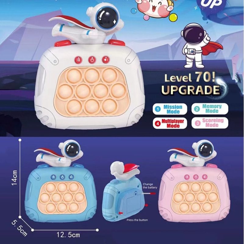 O Pop It Eletrônico Astronauta é uma versão interativa do clássico jogo de estourar bolhas, trazendo desafios de luz e memória que estimulam reflexos, concentração e raciocínio rápido. Ideal para crianças e adolescentes, ele proporciona entretenimento, relaxamento e desenvolvimento cognitivo ao mesmo tempo!