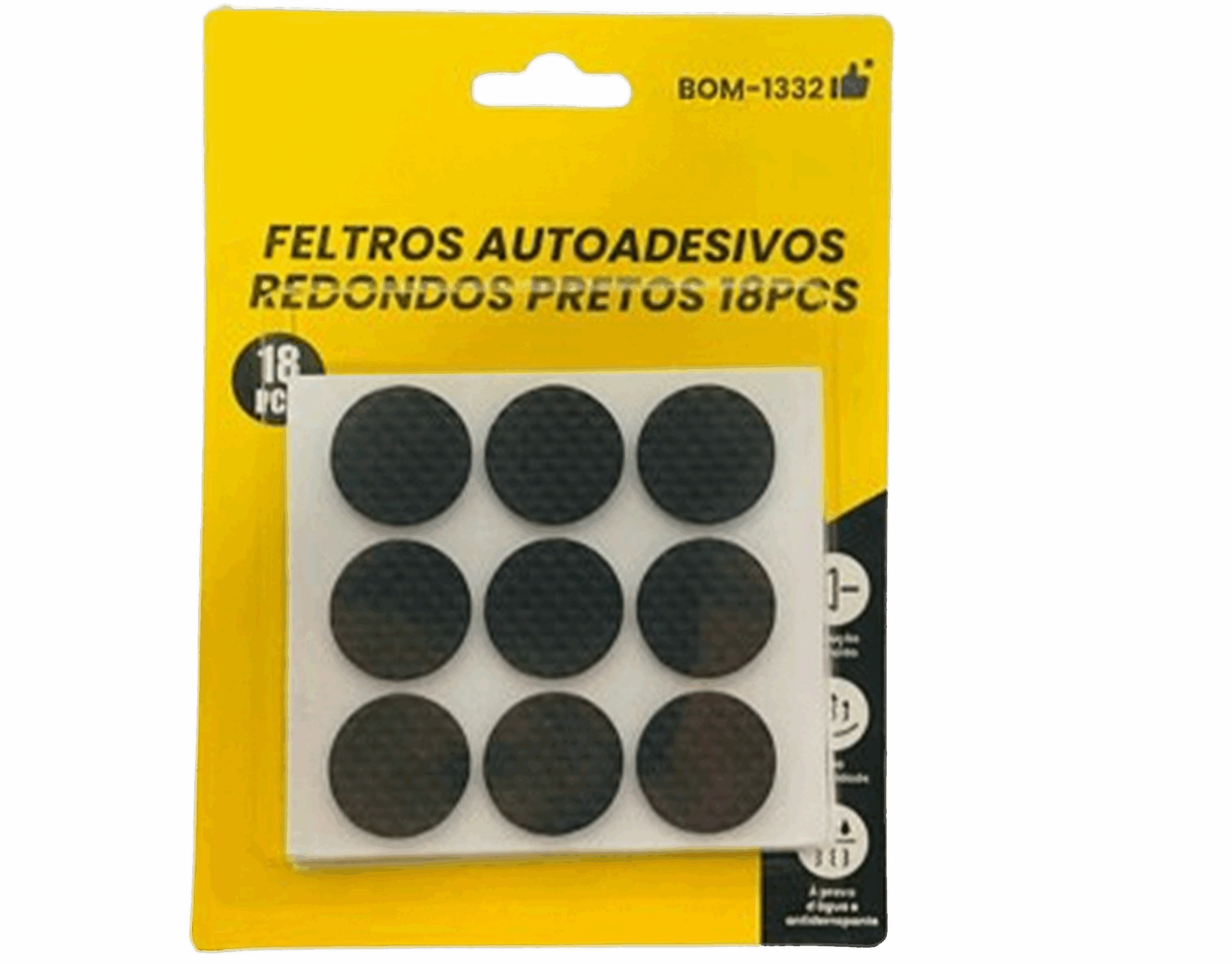 • 18 unidades de feltros adesivos (25mm de diâmetro x 3mm de espessura)