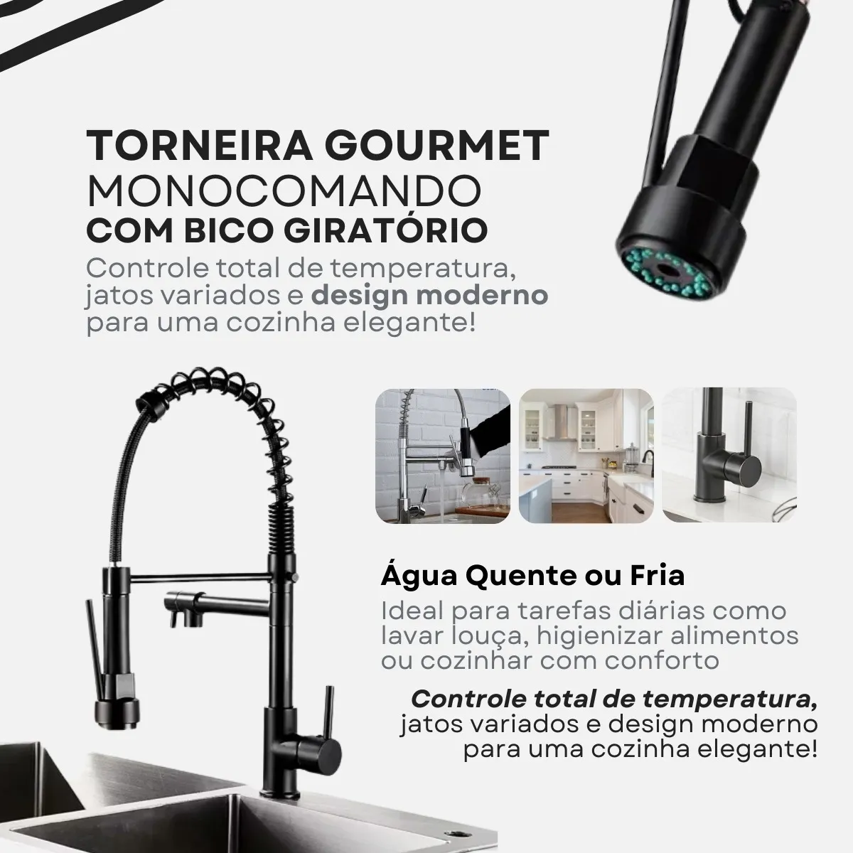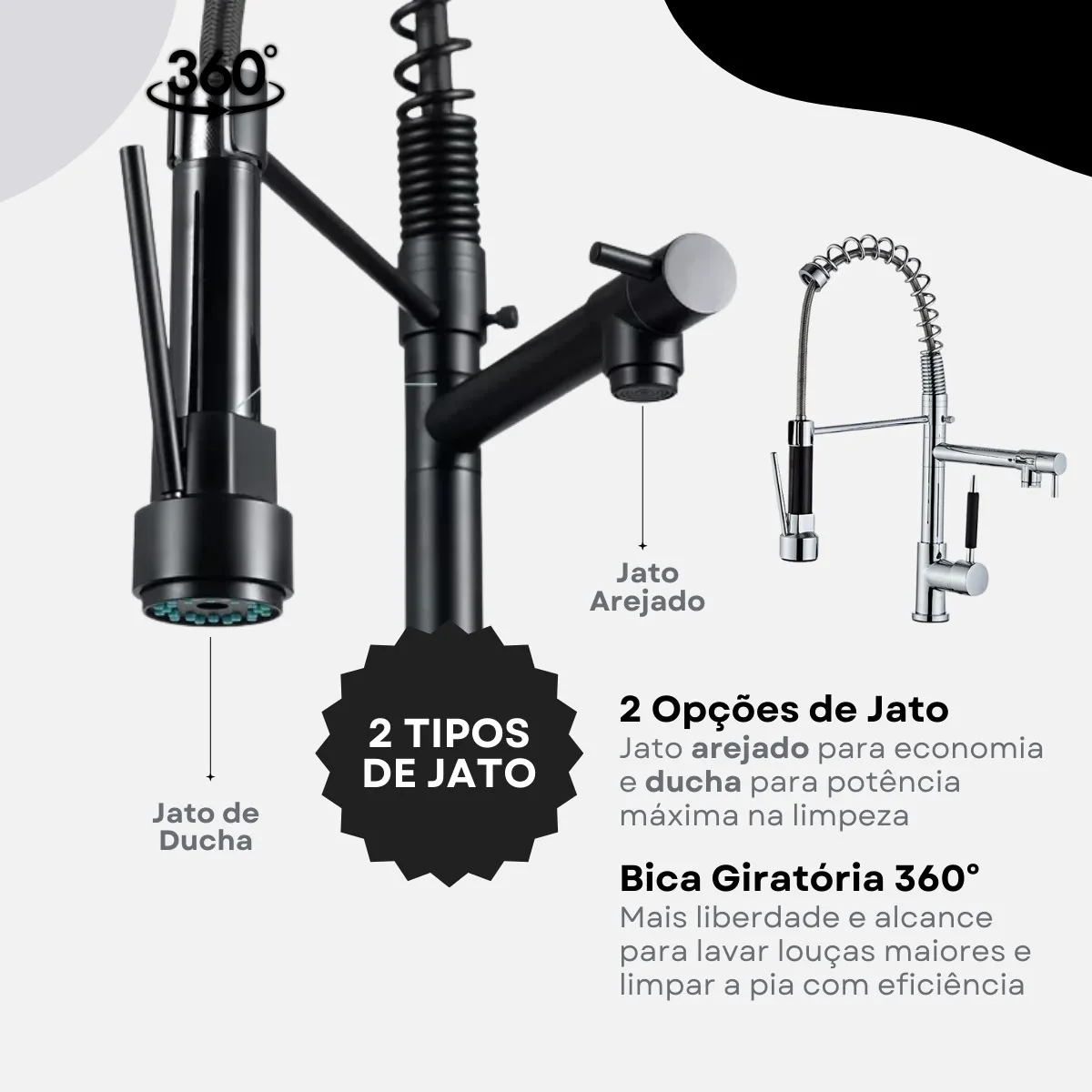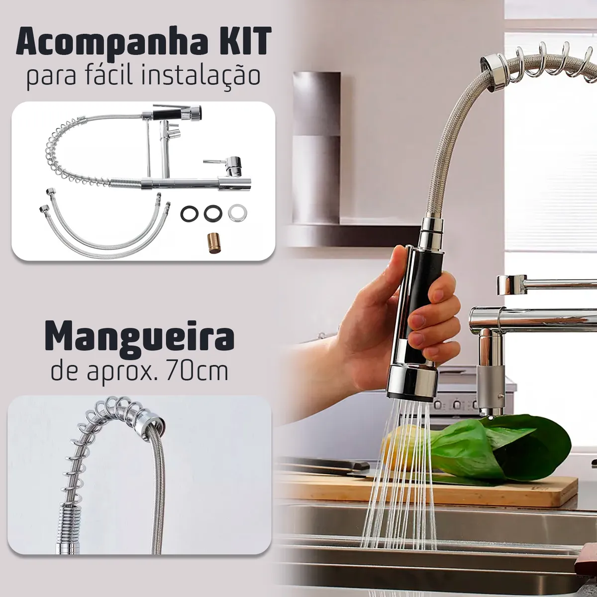 • 🔄 Bica giratória 360° – liberdade total para lavar, enxaguar ou encher panelas grandes com facilidade.